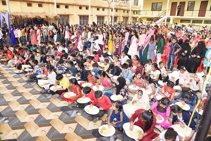 There was a short cultural programme from VidyaJyothi and St. Joseph the worker school children. 1500 people have participated in the programme. A sumptuous meal was served to all. After the programme there was Christmas gift distribution for all the sponsored children.