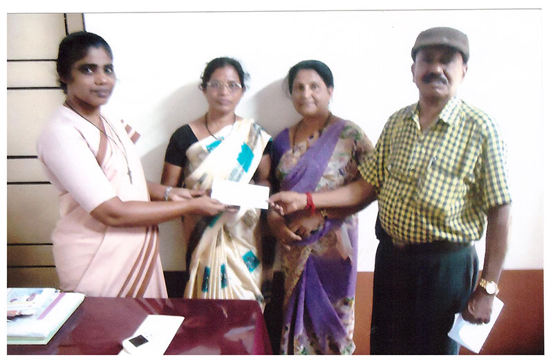 - Mrs. Usha R from Pachanady, received Rs. 50,000/- ( Rupees Fifty Thousand only) under the Health Insurance Scheme on Account of her Son Mr Hardik Raj aged 25, who died in a road accident in August 2016.
